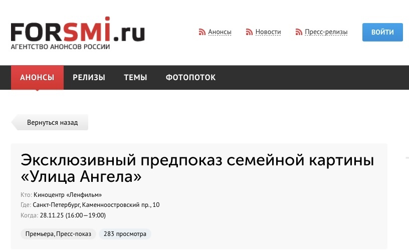 Эксклюзивный предпоказ семейной картины «Улица Ангела»